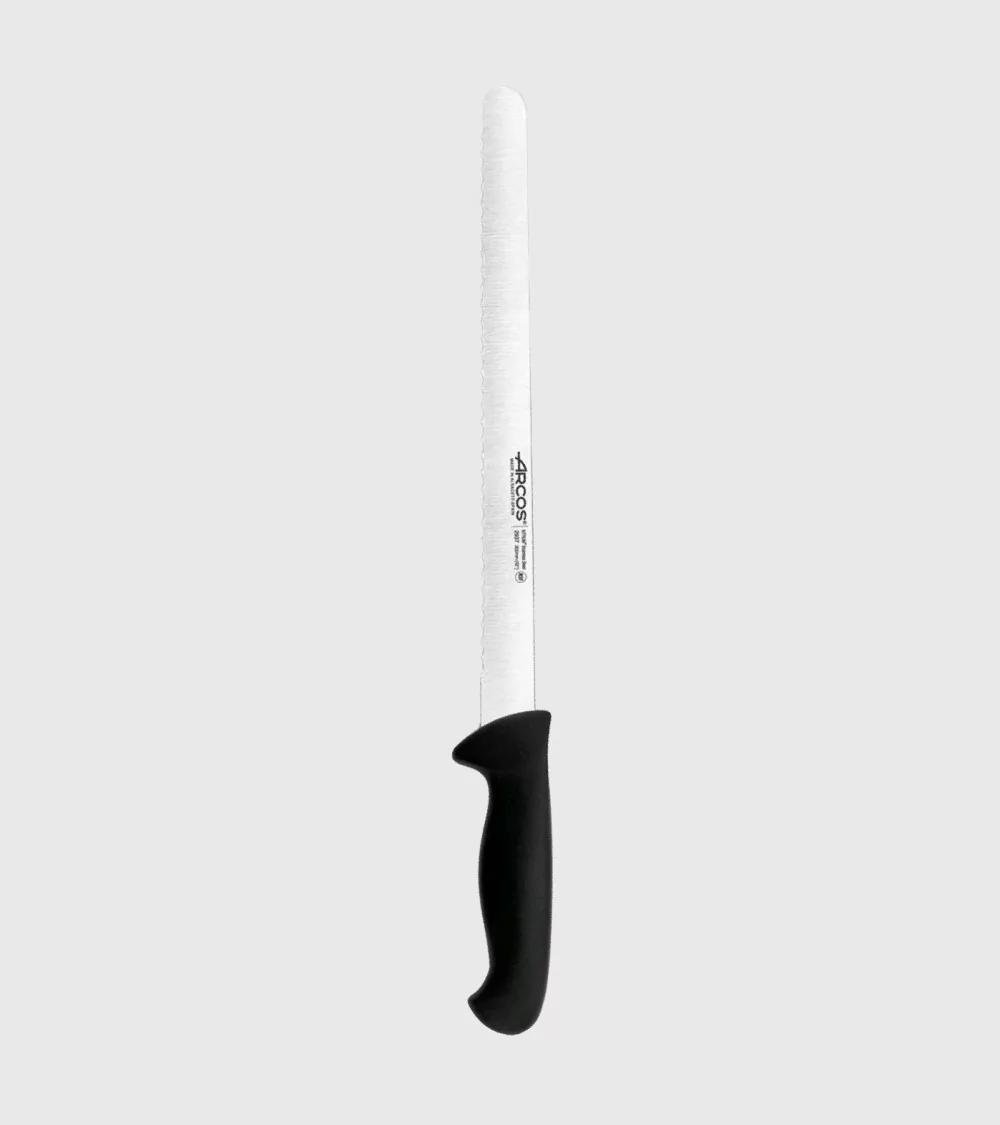 Le couteau génoise professionnel 30 cm est l’outil idéal pour les pâtissiers et boulangers exigeants. Doté d’une lame longue, rigide et crantée, il permet de trancher les génoises, gâteaux, pains ou brioches avec une précision nette et sans écrasement. Son manche noir ergonomique offre une excellente prise en main pour un usage intensif en laboratoire ou en cuisine. Fabriqué avec des matériaux robustes et hygiéniques, ce couteau répond aux normes professionnelles pour garantir confort, efficacité et durabilité.